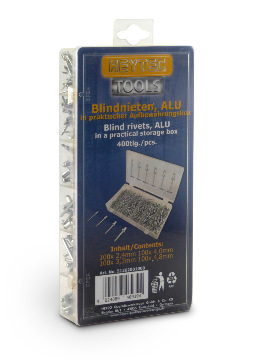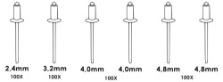 Blindnieten-Sortiment Aluminium, 2.4–4.8 mm, 400-teilig